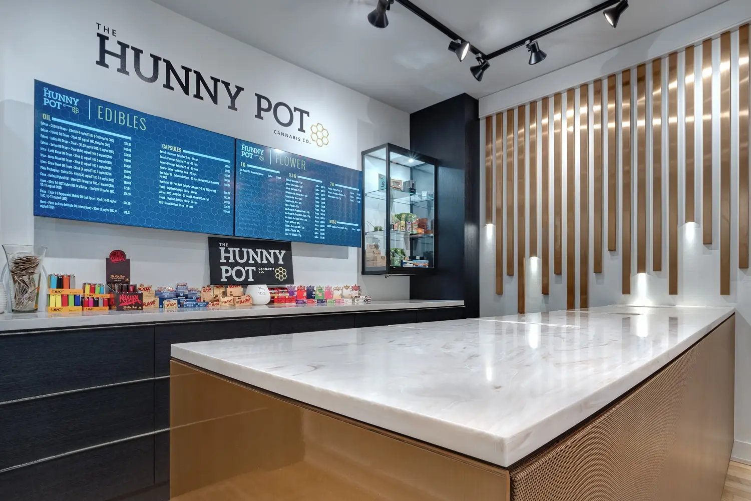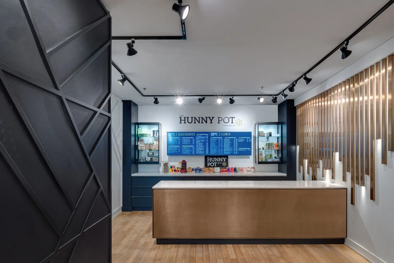 The Hunny Pot Cannabis Co., is Toronto's first legal cannabis retailer. The store with more than 3,500 sq.ft. was carefully curated to provide the ultimate consumer experience. Designed by SevenPoint Interiors , it plays a significant role in the pillars of the business, modern and elevated, making the space comfortable, inclusive and approachable.