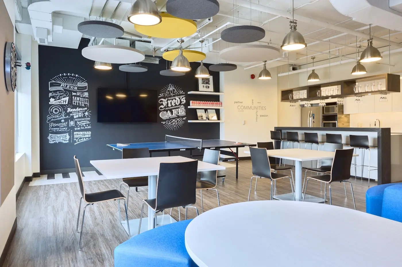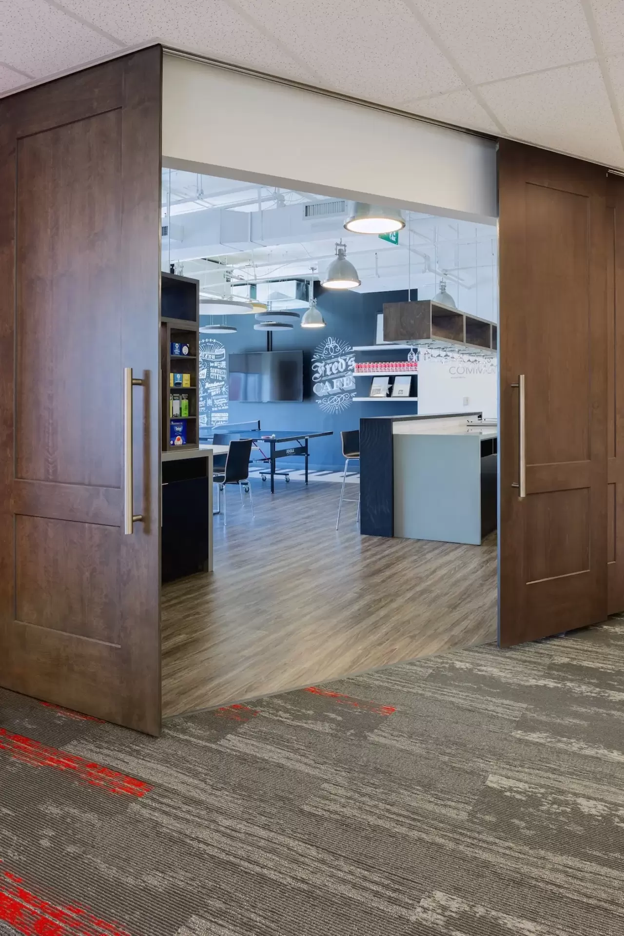 McLean Hallmark offers unique property and casualty (P&C) solutions, specializing in commercial and person lines insurance. The offices have low-paneled, bench-style desking, with a variety of meeting spaces and a lunchroom, known as Fred’s café, as a place to foster staff camaraderie. NFP, a leading insurance broker and consultant acquired McLean Hallmark Insurance Group Ltd. in July 2020.