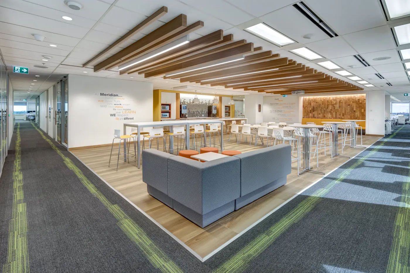 Meridian, Ontario’s largest credit union, relocated its corporate office from the downtown core to the west-end of Toronto. The new 32,000 sq.ft. workplace is a vibrant and energizing space that supports the leadership teams’ strategic business objectives and the health and well-being of its employees