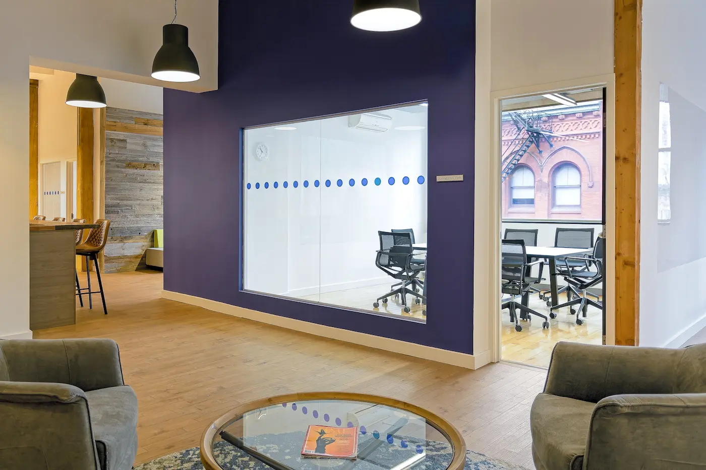 With minor renovations and furnishings, Bullock + wood Design Inc. transformed a post and beam suite into their Innovation Centre in two months. The space was refreshed with blue branding and modern lighting, and created dynamic divisions with EzoBord’s Modular Work Zone panels just like MOLLI needed to develop their medical technology and create their own culture.