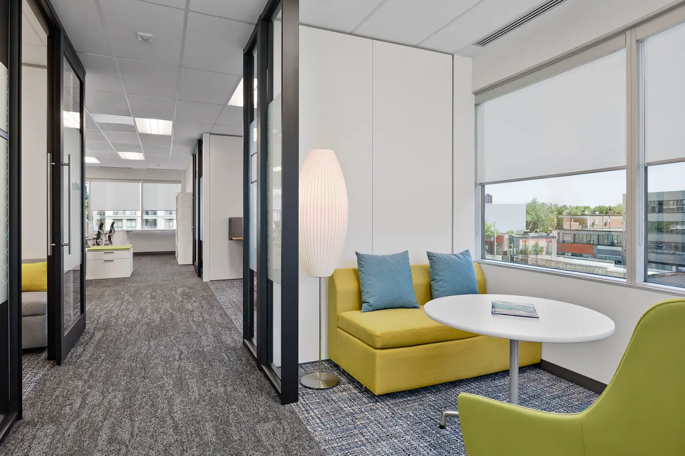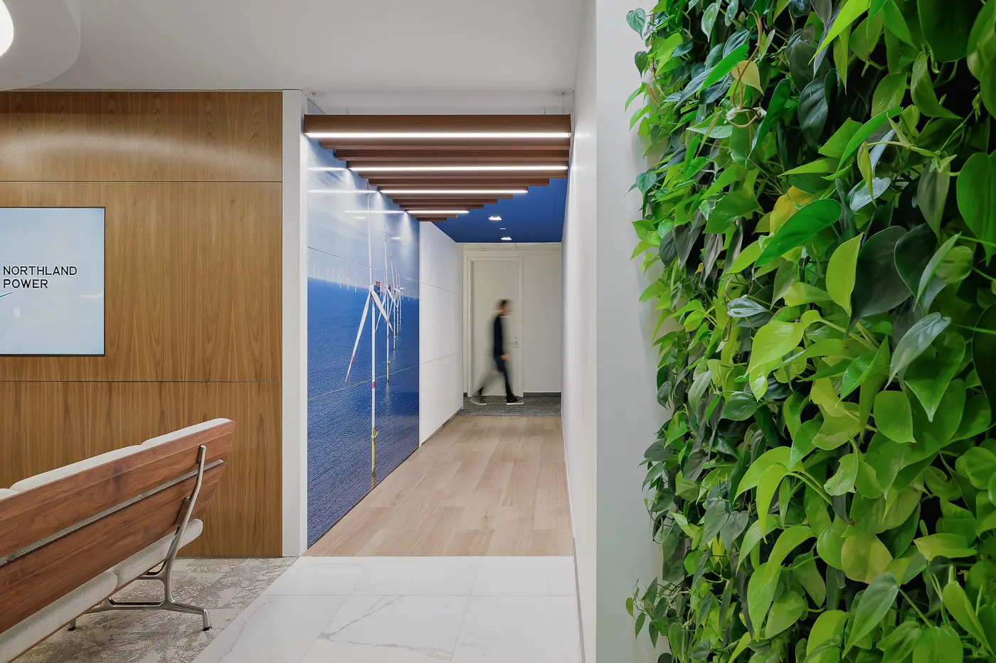 The redesign of Northland Power’s space transformed it into an inspiring environment that reflects the company’s brand and values. Key features include the reuse of DIRTT’s modular system for sustainability, expansive open areas with natural light, biophilic design elements, and a vibrant color palette. The layout supports diverse work styles with collaborative zones, individual workstations, Wellness Rooms, and a Walk Station. Notable additions include switchable glass for privacy and DIRTT’s Breathe Wall, enhancing both creativity and wellbeing.